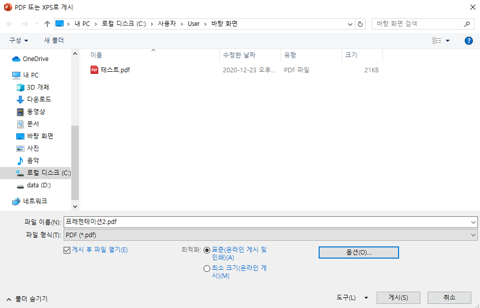 그대로 저장하면 PPT를 PDF로 변경하기 완성!!