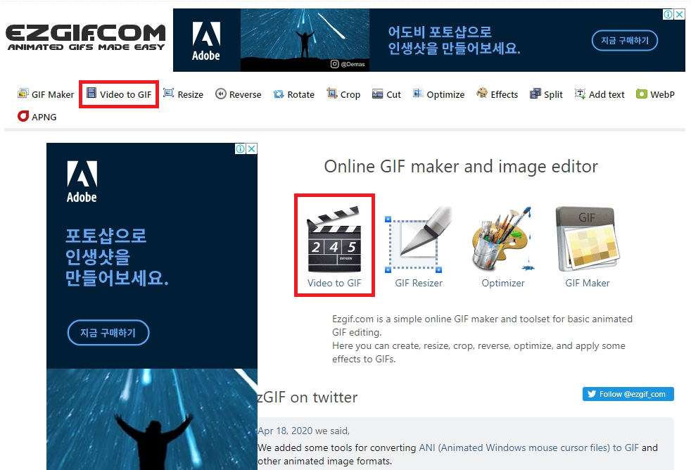 (동영상을 편집하거나 애니메이션을 만들 수 있는 다른 메뉴들도 많으니 필요하면 이용하면 된다.)