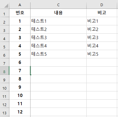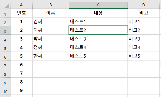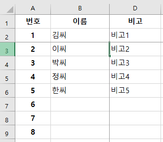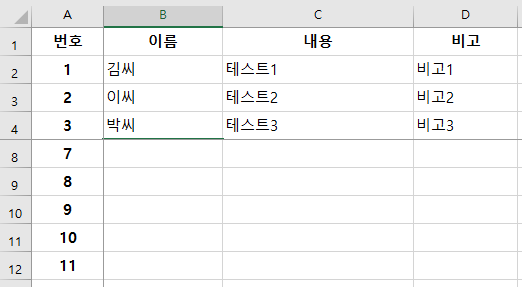 예를들어, 예시파일에서 만약 3번 행을 고정하고 싶다면 4번 행을 클릭한다.