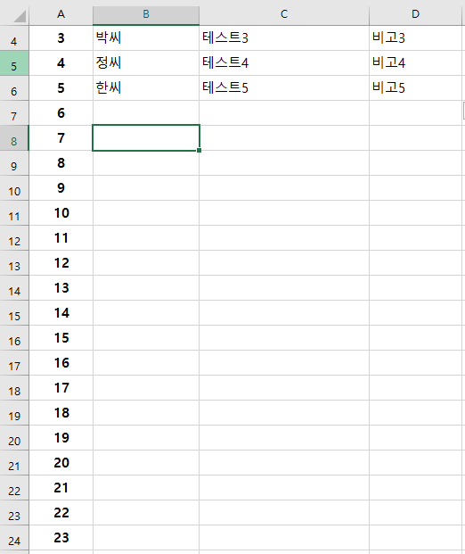 그러면, 아래와 같이 내가 원하는 3번 행이 틀 고정되었다.