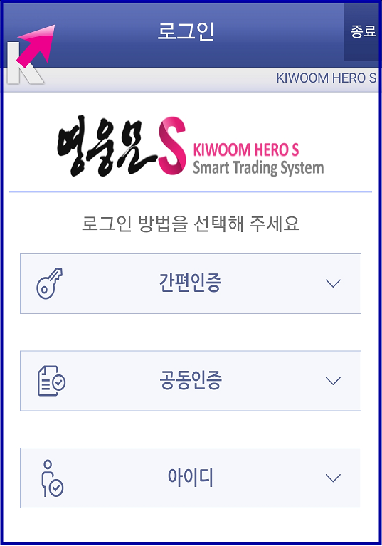 여기까지하면 '영웅문 S'나 '영웅문4'에 로그인할 수 있다.