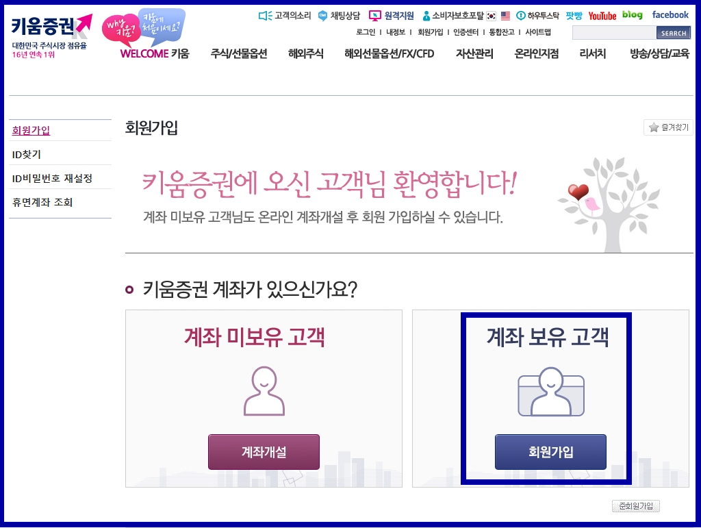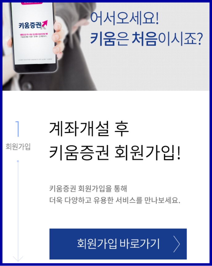 은행에서 증권계좌를 개설했으므로, 계좌 보유 고객 회원가입을 하면된다.