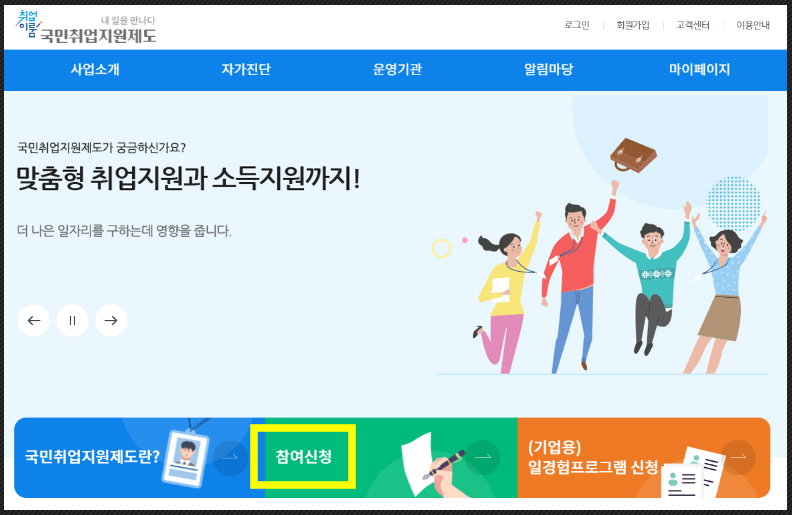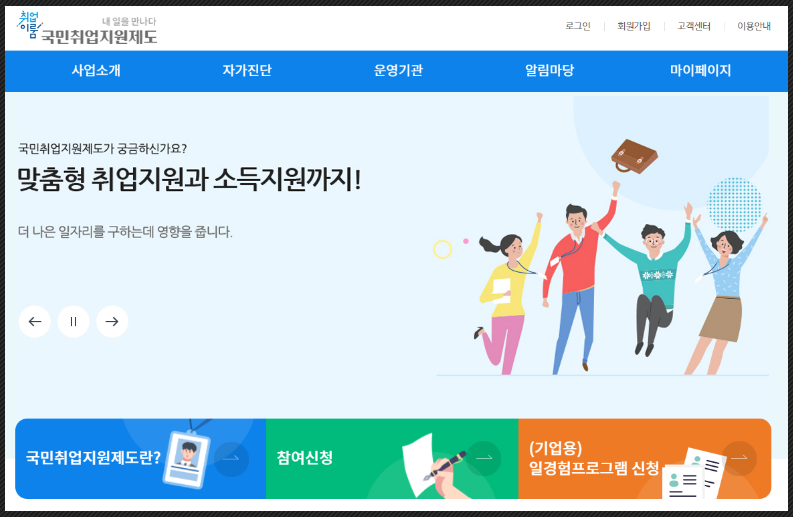 1. 국민취업지원제도 홈페이지에 접속한다.